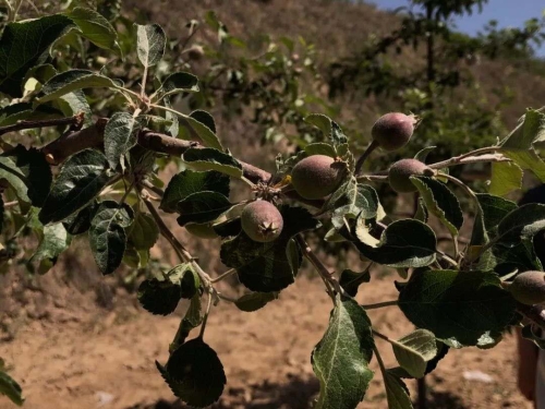 石山村秋樹畔組的農民李建義看著剛剛被區技術員疏到地上的蘋果幼果,眼眶瞬間就紅了!