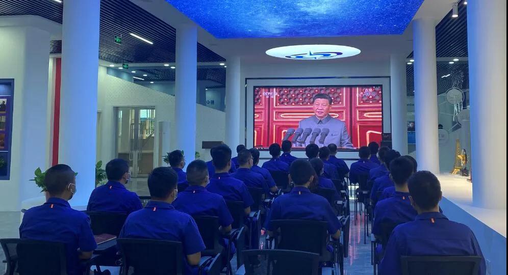 集團公司總經(jīng)理、黨組副書記劉大山,黨組副書記周艦,黨組成員、總會計師張華,紀檢監(jiān)察組組長、黨組成員陳學釧,黨組成員、副總經(jīng)理鄒文超,黨組成員、副總經(jīng)理植玉林帶領總部全體職工觀看慶祝大會,各單位組織機關干部、科研人員、車間工人等通過集中收看、電視、電腦、手機網(wǎng)絡等方式觀看慶祝大會。