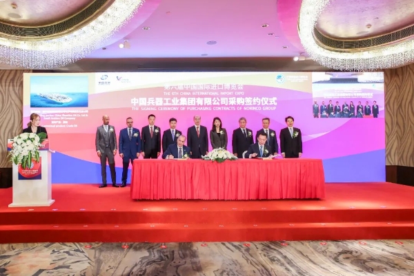 本次專場采購簽約儀式圍繞“資源進口、材料采購、技術引進”三大板塊展開,中國北方工業有限公司所屬振華石油、北方礦業、北方國際以及中國兵工物資集團有限公司、內蒙古北方重工業集團有限公司、北方華錦聯合石化有限公司等企業分別與來自10個國家的17家企業開展主題采購簽約,現場簽約金額達312億元人民幣。進博會期間,兵器工業集團累計簽約進口采購合同總金額達357億元人民幣,再創歷屆進博會新高。